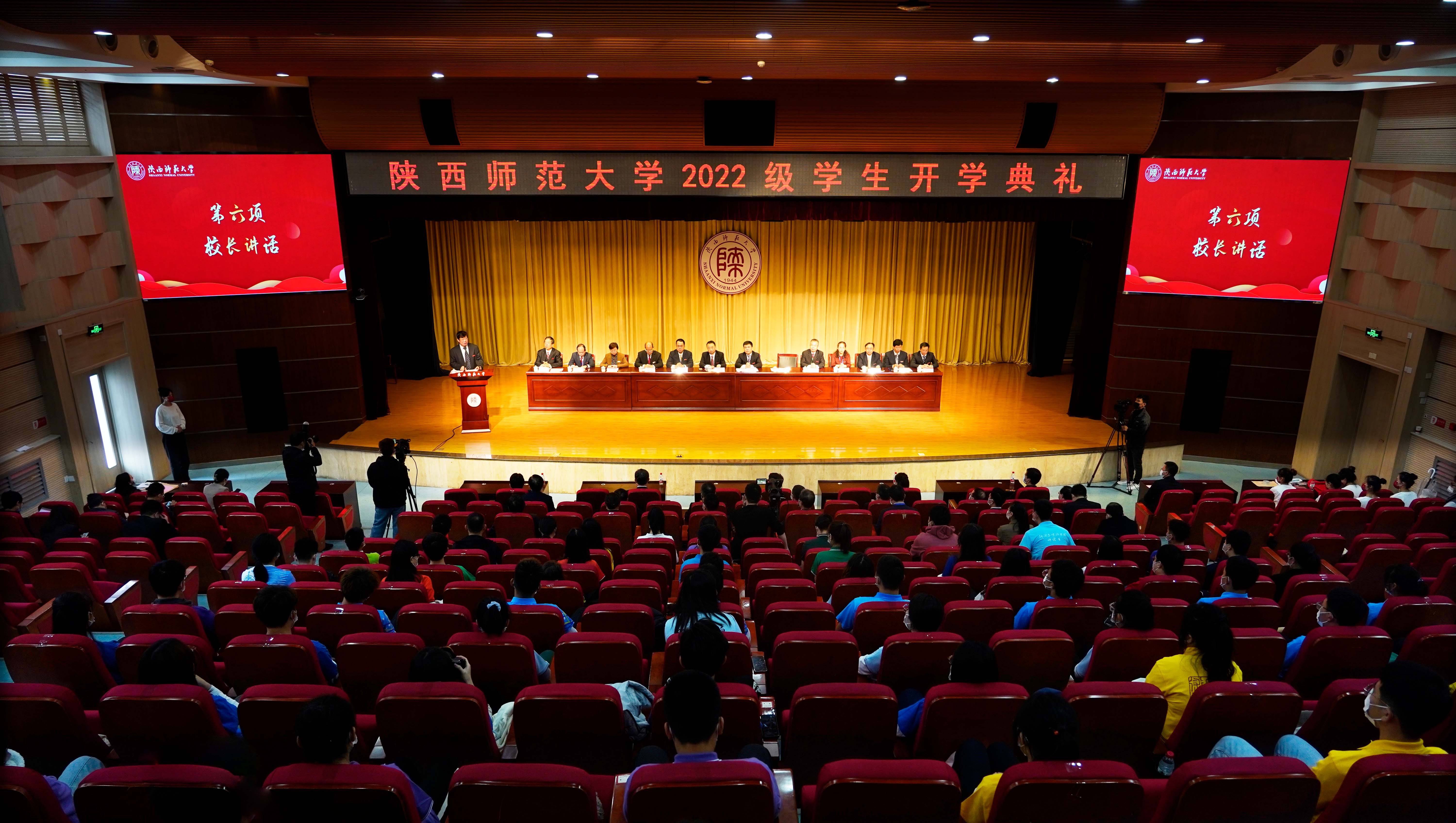 师大新闻网讯 曲水之畔,聚四海英才;终南山麓,育万家栋梁。10月28日上午,我校在长安校区新勇学生活动中心举行2022级学生开学典礼。党委书记李忠军,校长游旭群,党委副书记卢胜利、王永安,党委副书记、纪委书记石峰,副校长杨祖培、党怀兴、李磊、董治宝,党委常委罗永辉、李贵安,校长助理袁一芳、周正朝等出席典礼。典礼由党怀兴主持。